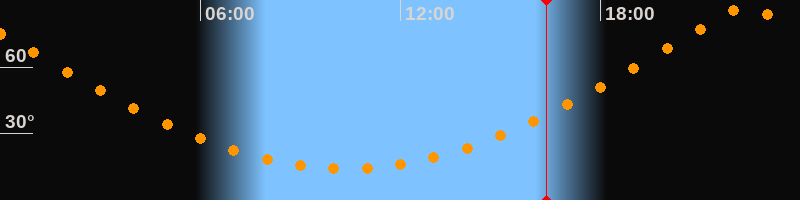 | Höchster Stand (Kulmination) | 22:21 Uhr (h = 87,4°) |