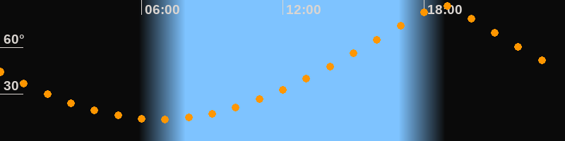 | Höchster Stand (Kulmination) | 18:45 Uhr (h = 87,4°) |
