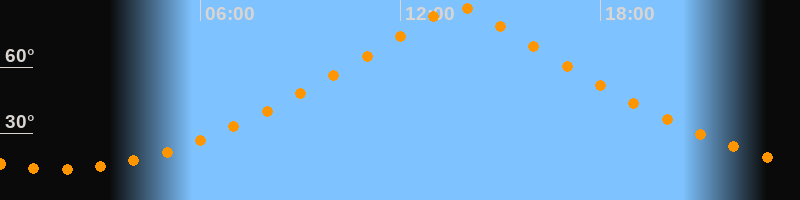 | Höchster Stand (Kulmination) | 13:44 Uhr (h = 87,4°) |