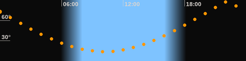 | Höchster Stand (Kulmination) | 22:07 Uhr (h = 87,4°) |