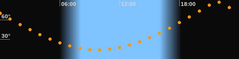 | Höchster Stand (Kulmination) | 21:47 Uhr (h = 87,4°) |