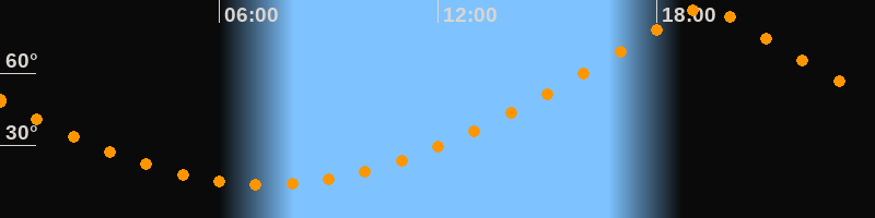 | Höchster Stand (Kulmination) | 19:18 Uhr (h = 87,4°) |