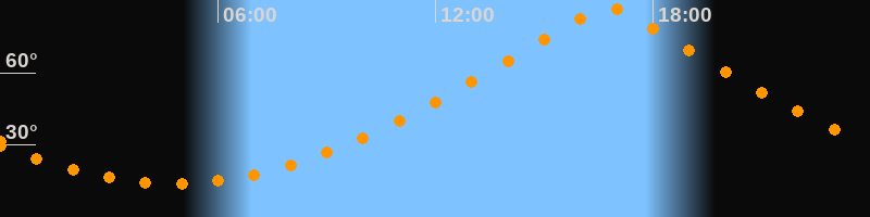 | Höchster Stand (Kulmination) | 16:45 Uhr (h = 87,4°) |