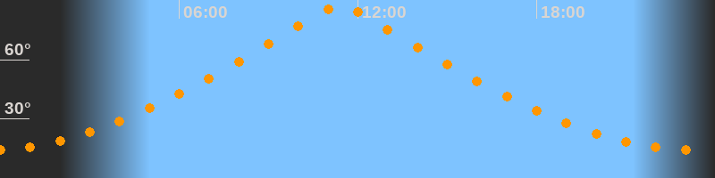 | Höchster Stand (Kulmination) | 11:24 Uhr (h = 87,4°) |