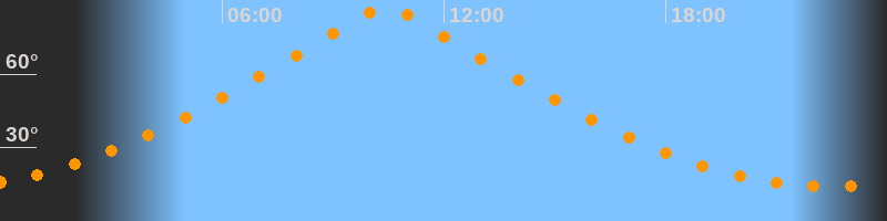 | Höchster Stand (Kulmination) | 10:25 Uhr (h = 87,4°) |