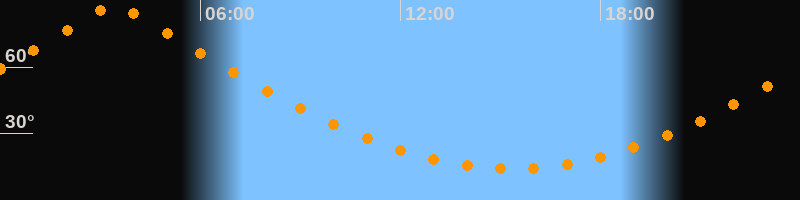 | Höchster Stand (Kulmination) | 03:25 Uhr (h = 87,4°) |