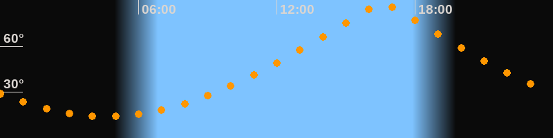 | Höchster Stand (Kulmination) | 16:35 Uhr (h = 87,4°) |
