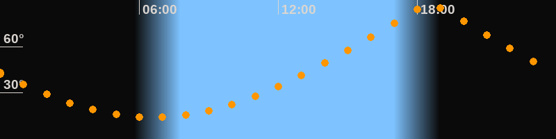 | Höchster Stand (Kulmination) | 18:34 Uhr (h = 87,4°) |