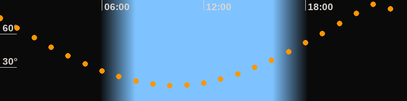 | Höchster Stand (Kulmination) | 22:14 Uhr (h = 87,4°) |