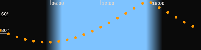 | Höchster Stand (Kulmination) | 17:35 Uhr (h = 87,4°) |