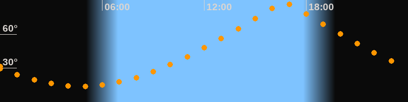 | Höchster Stand (Kulmination) | 16:43 Uhr (h = 87,4°) |