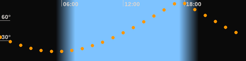| Höchster Stand (Kulmination) | 17:32 Uhr (h = 87,4°) |