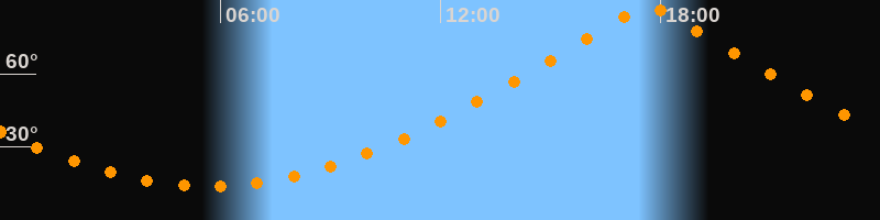 | Höchster Stand (Kulmination) | 17:40 Uhr (h = 87,4°) |