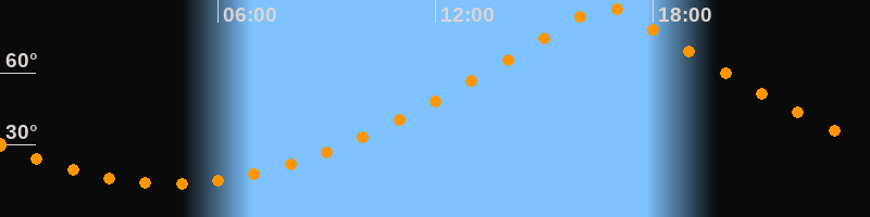 | Höchster Stand (Kulmination) | 16:41 Uhr (h = 87,4°) |
