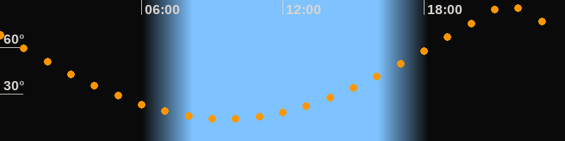| Höchster Stand (Kulmination) | 21:33 Uhr (h = 87,4°) |