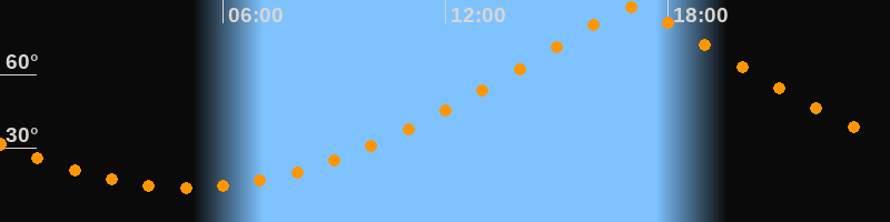 | Höchster Stand (Kulmination) | 17:02 Uhr (h = 87,4°) |