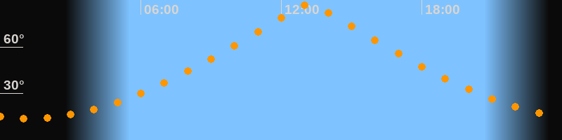 | Höchster Stand (Kulmination) | 13:11 Uhr (h = 87,4°) |