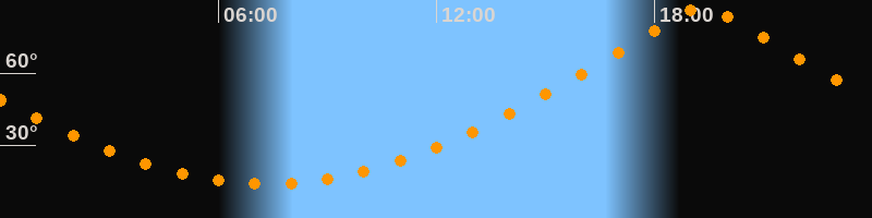 | Höchster Stand (Kulmination) | 19:21 Uhr (h = 87,4°) |