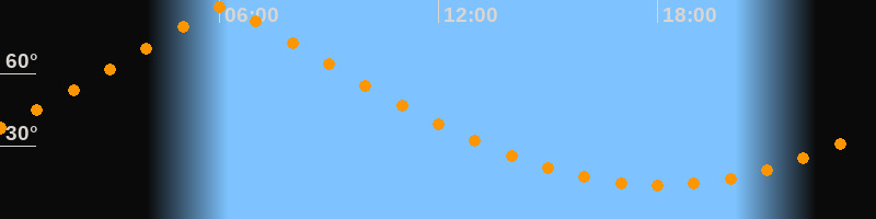 | Höchster Stand (Kulmination) | 06:07 Uhr (h = 87,4°) |