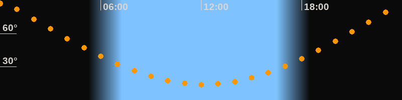 | Höchster Stand (Kulmination) | 00:07 Uhr (h = 87,4°) |