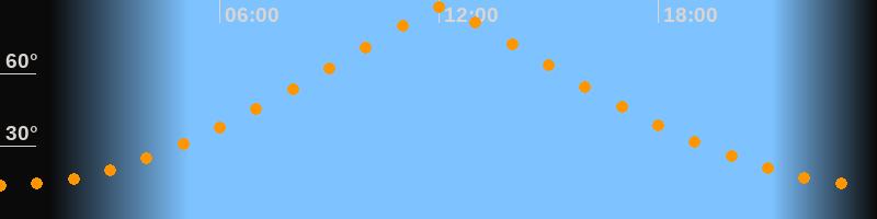 | Höchster Stand (Kulmination) | 12:04 Uhr (h = 87,4°) |