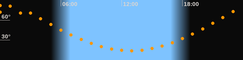 | Höchster Stand (Kulmination) | 00:51 Uhr (h = 87,4°) |