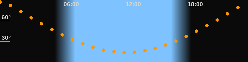 | Höchster Stand (Kulmination) | 00:08 Uhr (h = 87,4°) |