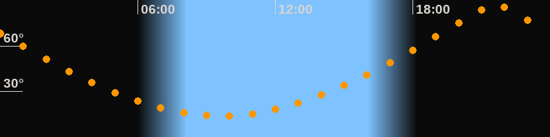 | Höchster Stand (Kulmination) | 21:36 Uhr (h = 87,4°) |