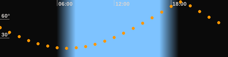 | Höchster Stand (Kulmination) | 19:03 Uhr (h = 87,4°) |