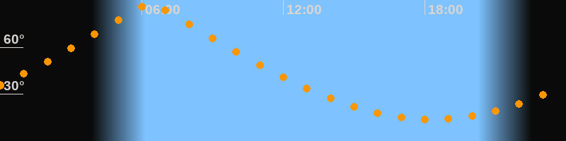 | Höchster Stand (Kulmination) | 06:21 Uhr (h = 87,4°) |
