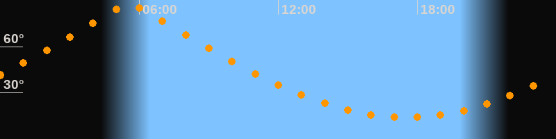 | Höchster Stand (Kulmination) | 05:34 Uhr (h = 87,4°) |
