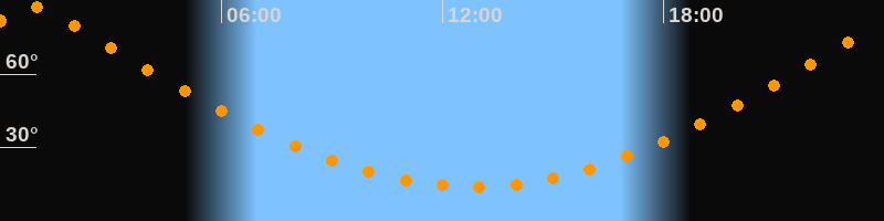 | Höchster Stand (Kulmination) | 00:50 Uhr (h = 87,4°) |