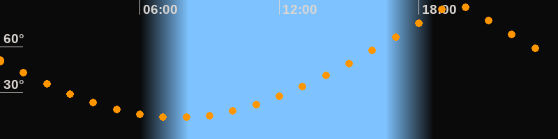 | Höchster Stand (Kulmination) | 19:35 Uhr (h = 87,4°) |