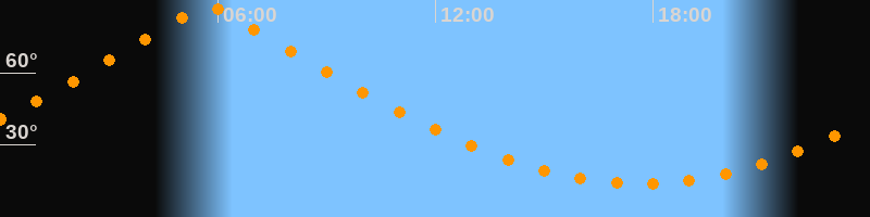 | Höchster Stand (Kulmination) | 05:43 Uhr (h = 87,4°) |