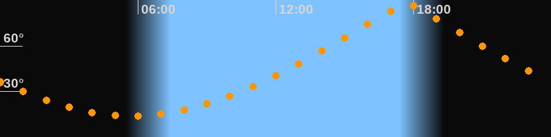 | Höchster Stand (Kulmination) | 17:42 Uhr (h = 87,4°) |