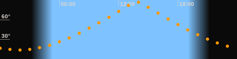 | Höchster Stand (Kulmination) | 13:50 Uhr (h = 87,4°) |