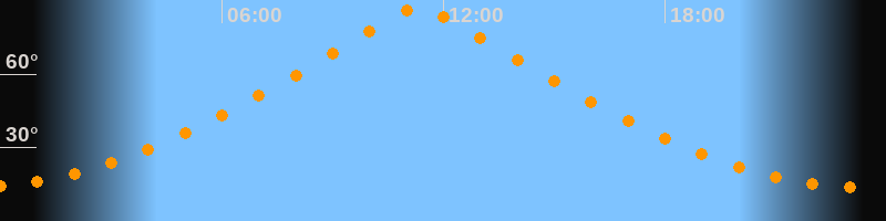 | Höchster Stand (Kulmination) | 11:21 Uhr (h = 87,4°) |