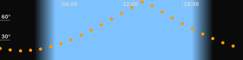 | Höchster Stand (Kulmination) | 14:07 Uhr (h = 87,4°) |