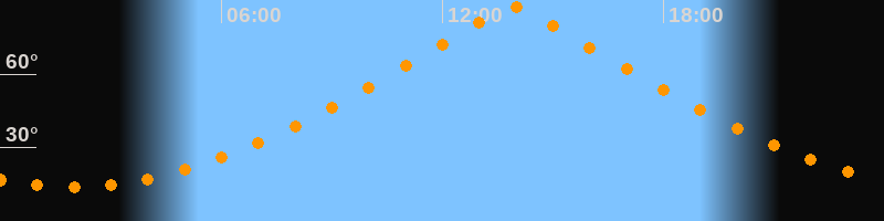 | Höchster Stand (Kulmination) | 13:55 Uhr (h = 87,4°) |