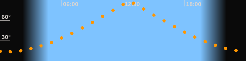 | Höchster Stand (Kulmination) | 12:36 Uhr (h = 87,4°) |
