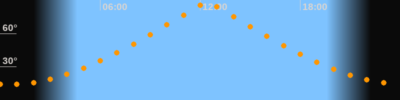 | Höchster Stand (Kulmination) | 12:24 Uhr (h = 87,4°) |