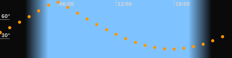 | Höchster Stand (Kulmination) | 05:47 Uhr (h = 87,4°) |