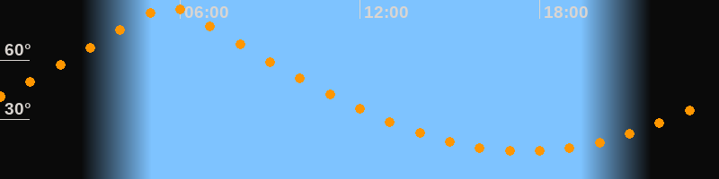 | Höchster Stand (Kulmination) | 05:36 Uhr (h = 87,4°) |