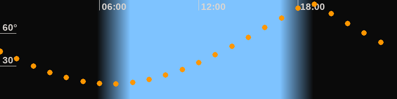| Höchster Stand (Kulmination) | 18:43 Uhr (h = 87,4°) |