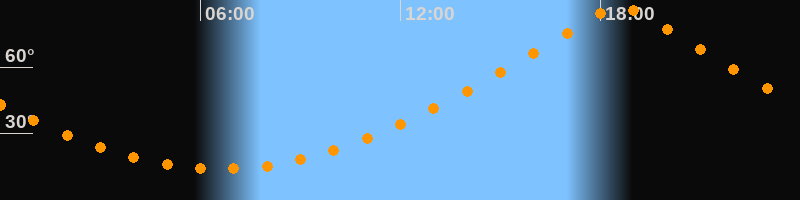 | Höchster Stand (Kulmination) | 18:35 Uhr (h = 87,4°) |