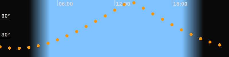| Höchster Stand (Kulmination) | 13:40 Uhr (h = 87,4°) |
