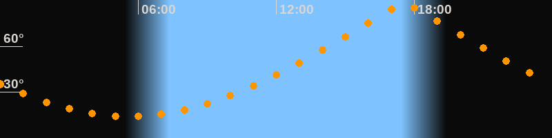 | Höchster Stand (Kulmination) | 17:34 Uhr (h = 87,4°) |