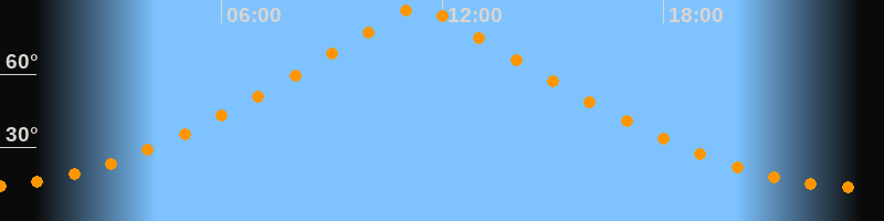 | Höchster Stand (Kulmination) | 11:21 Uhr (h = 87,4°) |