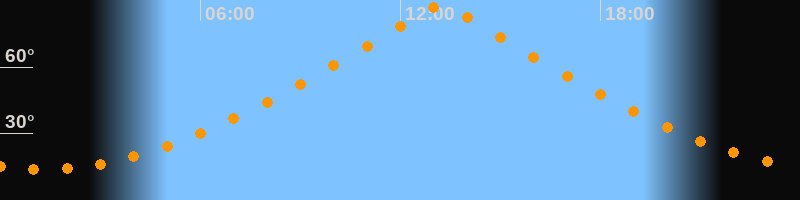 | Höchster Stand (Kulmination) | 13:12 Uhr (h = 87,4°) |