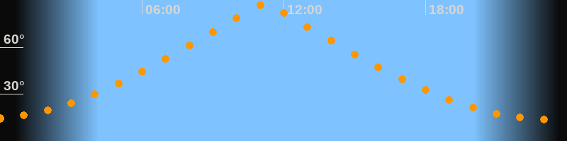 | Höchster Stand (Kulmination) | 11:11 Uhr (h = 87,4°) |